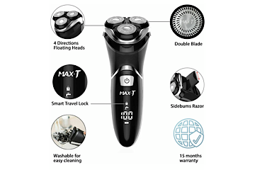 MAX-T Upgraded 3D ProSkin Wet & Dry Men's Electric Shaver, Rechargeable and Cordless Electric Razor with Pop-Up Precision Trimmer, IPX7 Waterproof Rotary Shavers, Gifts for Men, Black