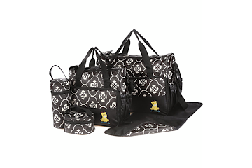 Just4baby Laminated Water Proof Insulated Thermal 5pcs Baby Nappy Changing Hospital Bag (Grey Leaves)